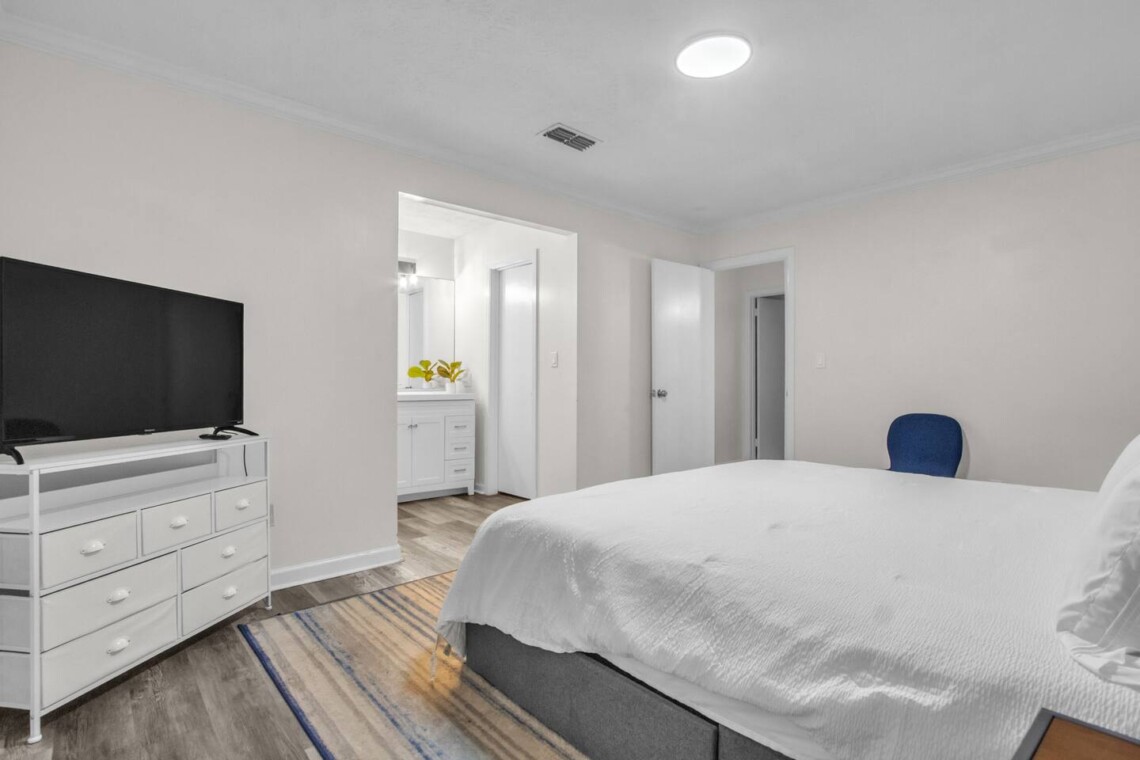 • Master bedroom with King bed + private bathroom