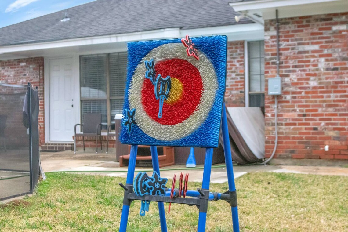 • Foam tomahawk & throwing star target game for safe, outdoor fun