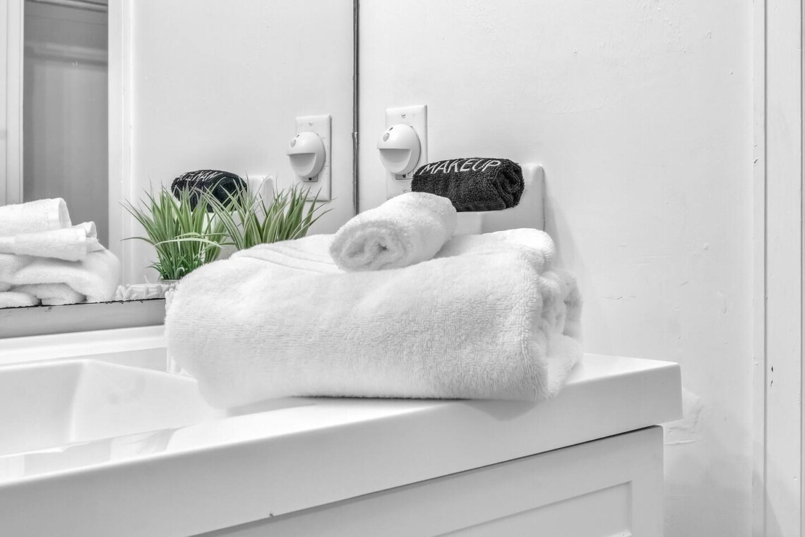 • Stocked with bath towels, hand towels, and washcloths