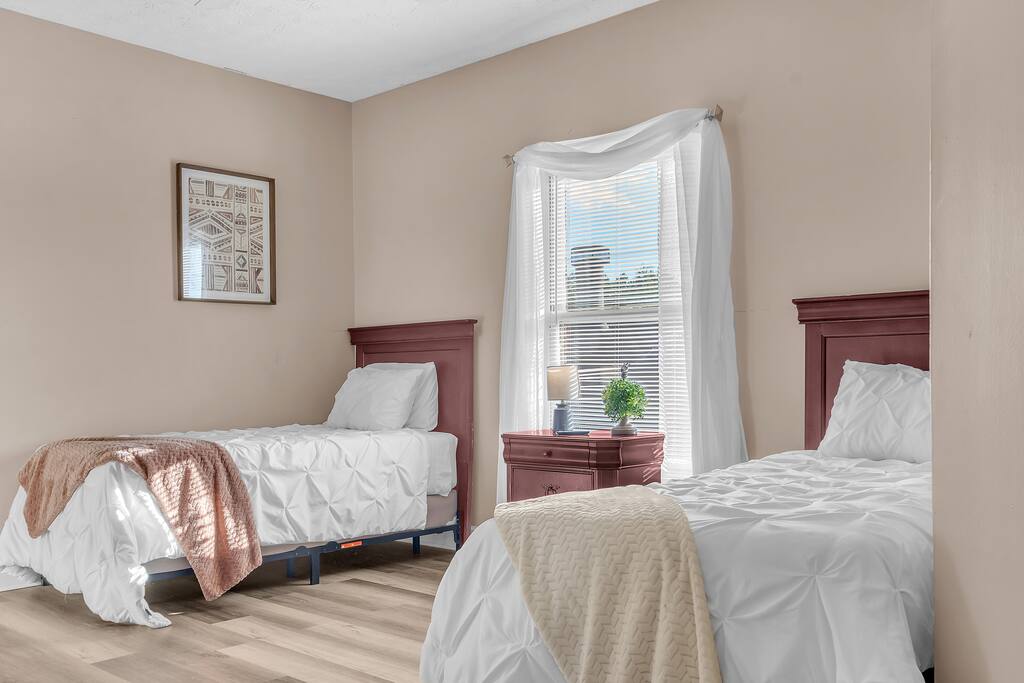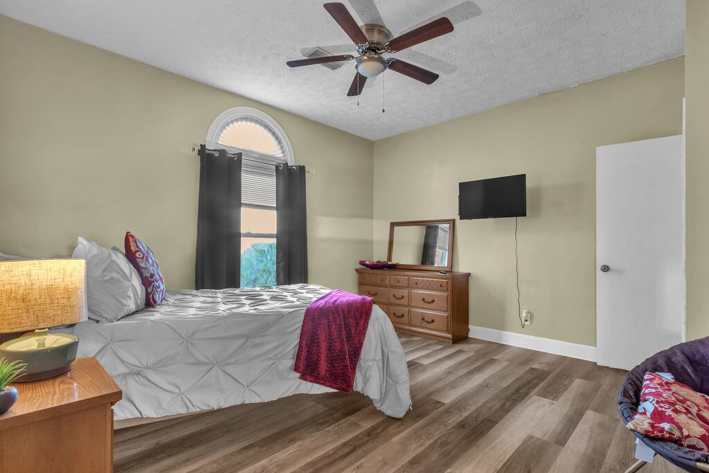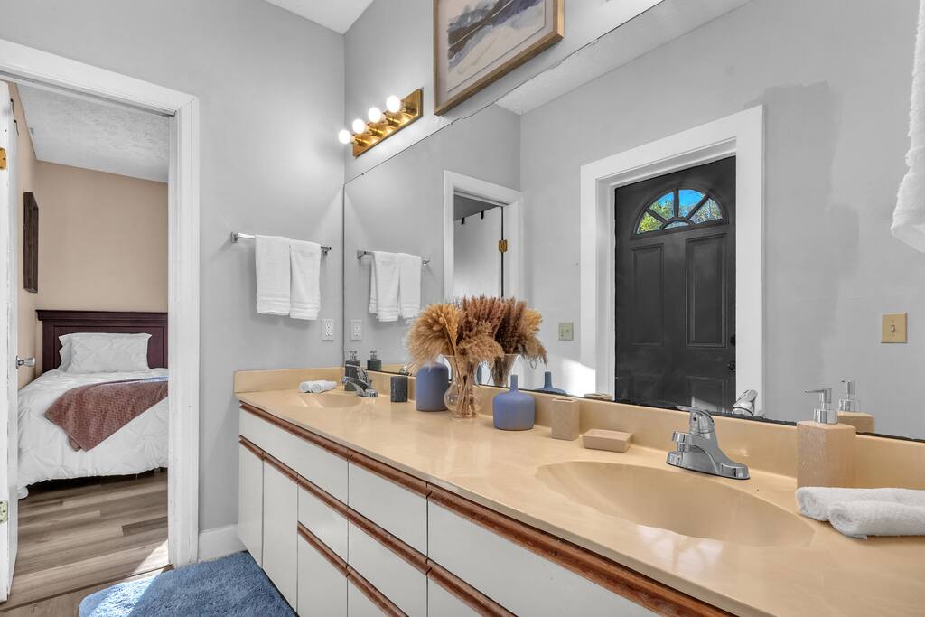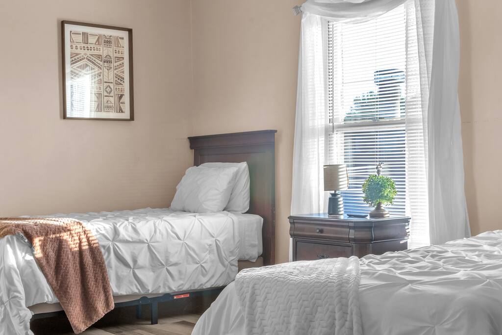 Bell Rd Retreat is a beautifully designed 4-bed, 2.5-bath home in the heart of Montgomery. Perfect for up to 6 guests, it features a spacious master bedroom with a king-sized bed, private patio, and seating area.