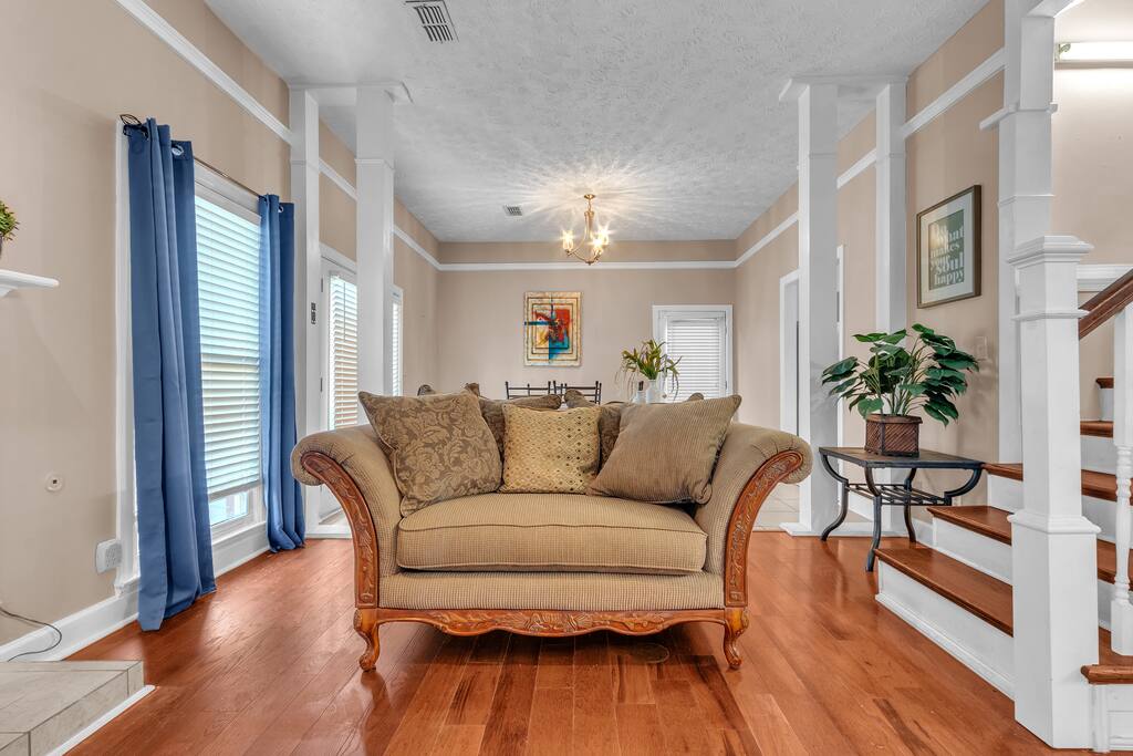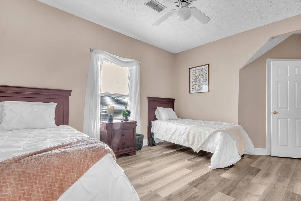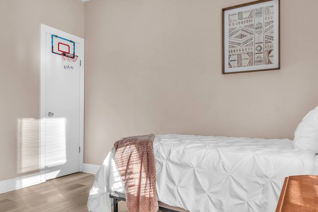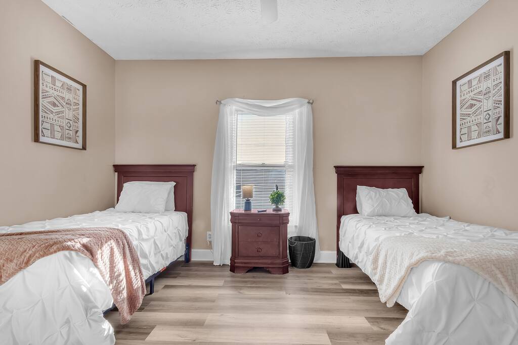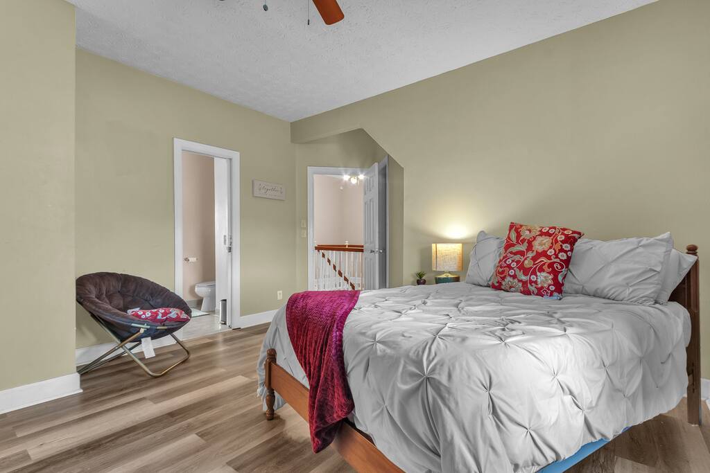 Bell Rd Retreat is a beautifully designed 4-bed, 2.5-bath home in the heart of Montgomery. Perfect for up to 6 guests, it features a spacious master bedroom with a king-sized bed, private patio, and seating area.