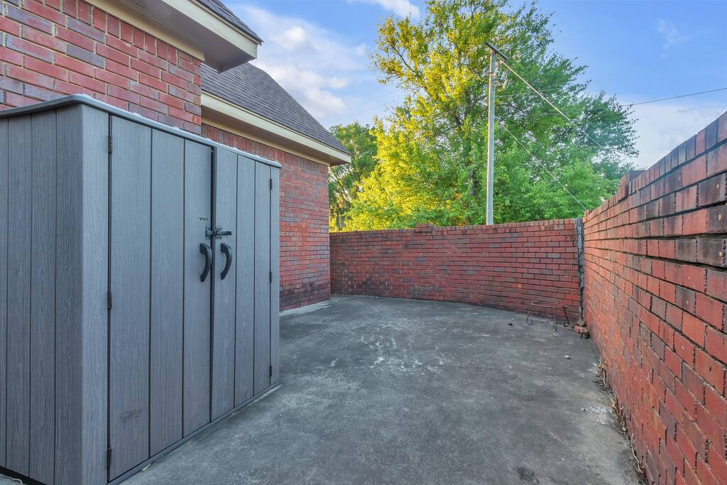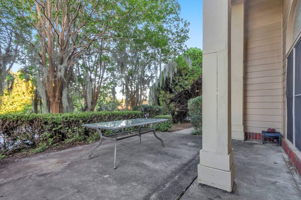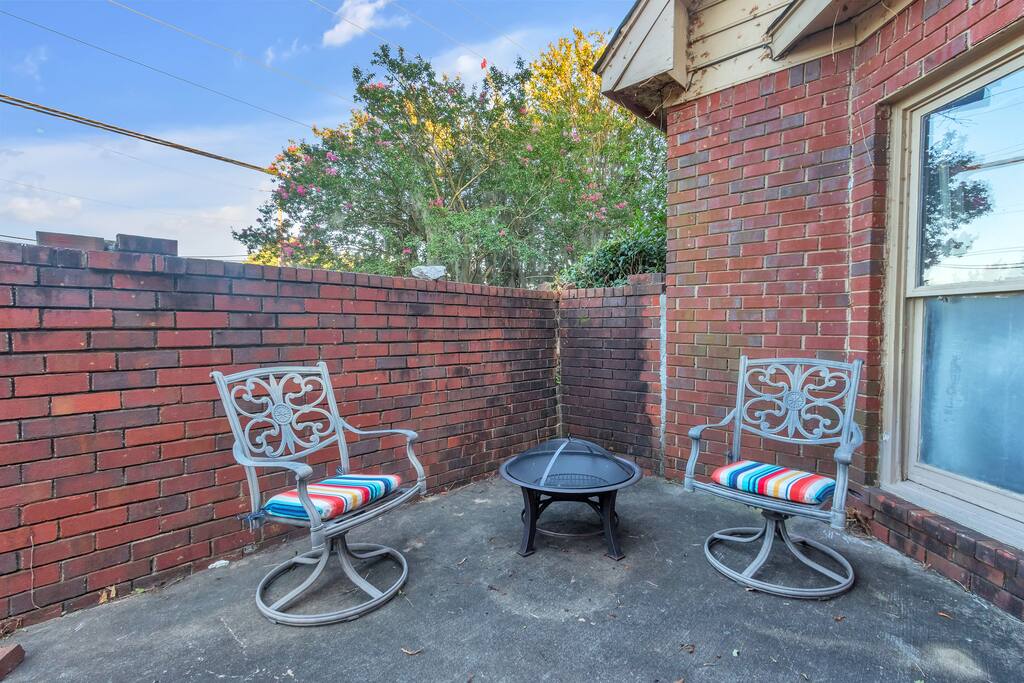 This home’s exterior offers peaceful, private spaces to unwind. The master suite opens to a spacious patio with a firepit, seating, and a table—perfect for a quiet retreat. Enjoy grilling on the shaded downstairs patio or sip coffee on the serene upstairs balcony.