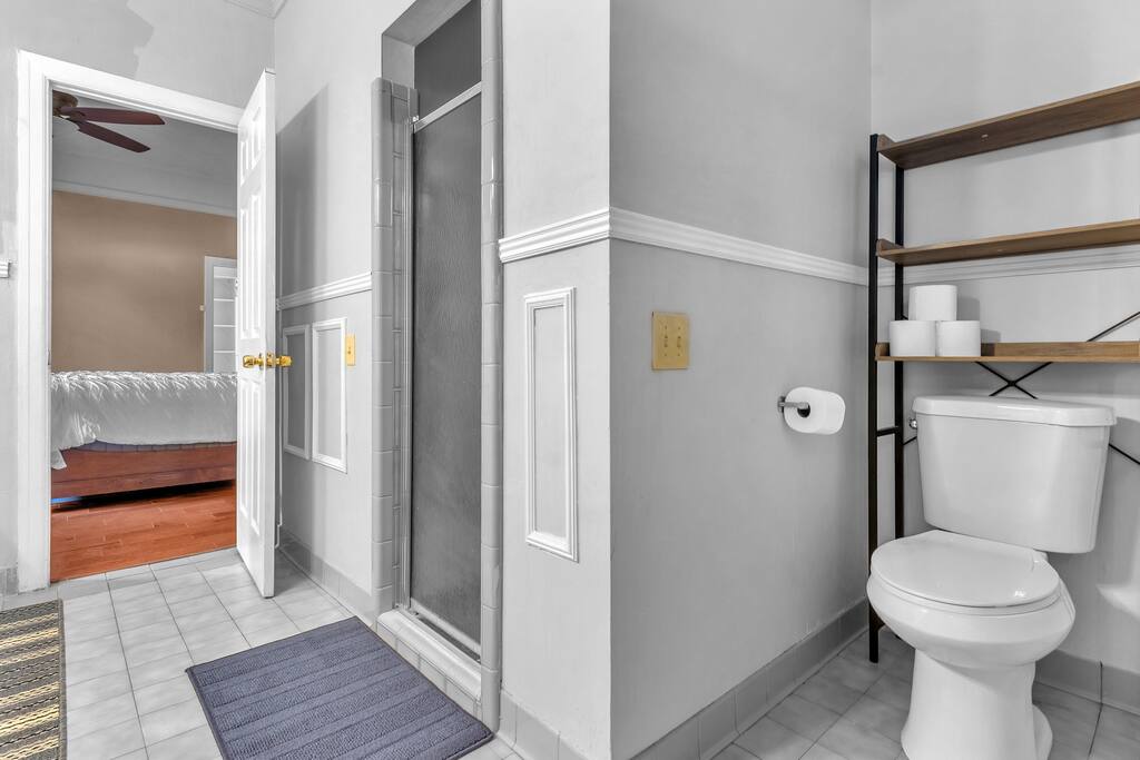 ☀ 2 full Bathroom; 1 half bath; 1 with large walk-in shower; bathtub upstairs