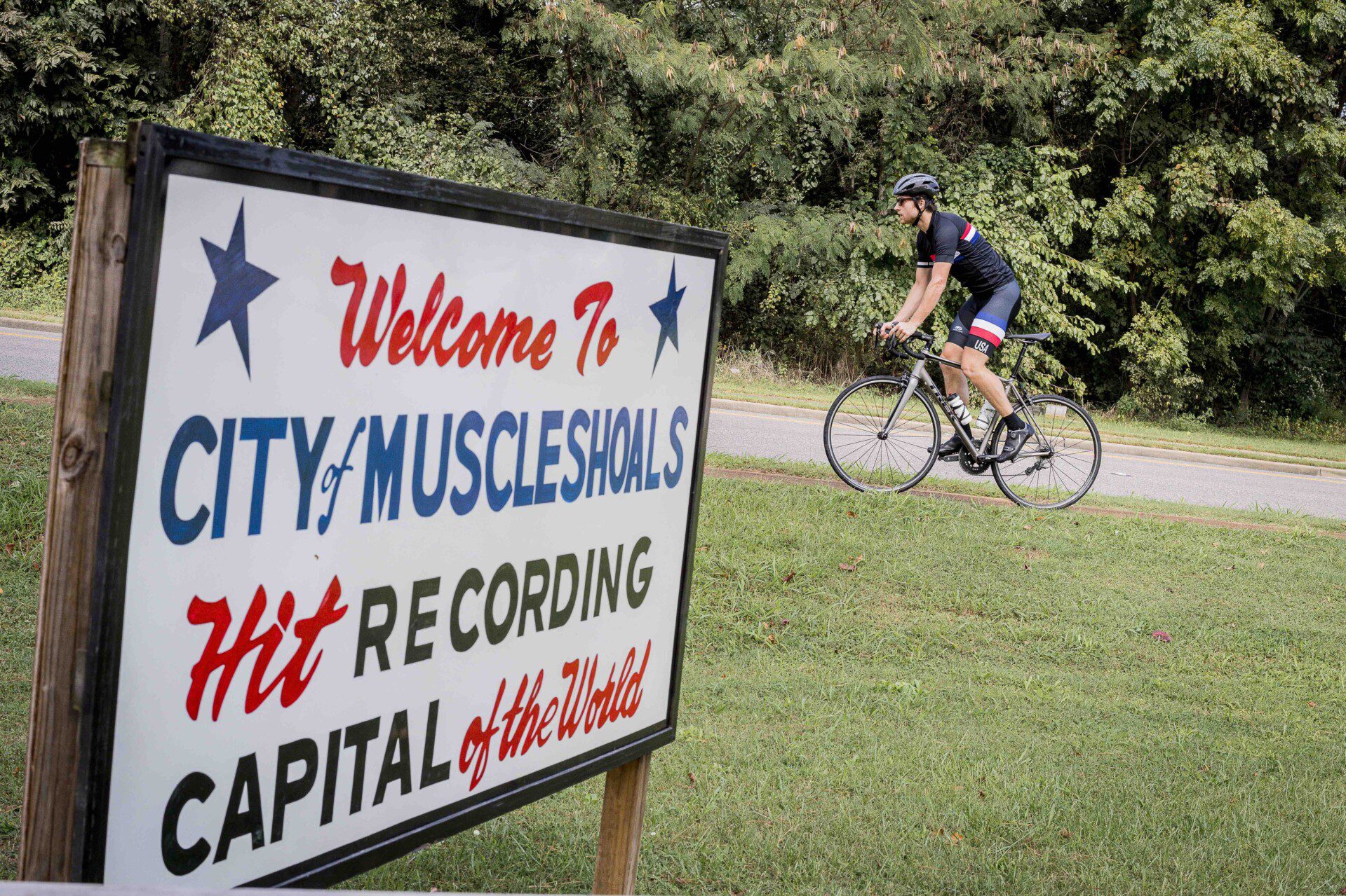 The Natchez Trace Parkway’s route, between Nashville & Natchez, covers Tennessee, Alabama & Mississippi. All three states fit squarely within a long Southern narrative burdened by the weight of hard historical truths not easily reconciled, but the arts create perspective by filling this between-history-and-myth space. Nashville has its country music heritage. Natchez & the larger New Orleans scenes have their swampy jazz & blues identities. And, in the middle, along the Trace from Muscle Shoals, Alabama, to Tupelo, Mississippi, all these cultural & historical strains come together to form a singularly American musical stew. The distance on the Trace between the Shoals, in Alabama, and Tupelo is roughly 90 miles, but this short route connects towering figures such as the Rolling Stones, Aretha Franklin & Bob Dylan to Elvis Presley and his boyhood home in Tupelo. For the cyclist, this stretch of the parkway represents a gently rolling pleasure just shy of a century, so two days of riding & exploration in adjacent towns is the chance to experience an important epicenter of American music.